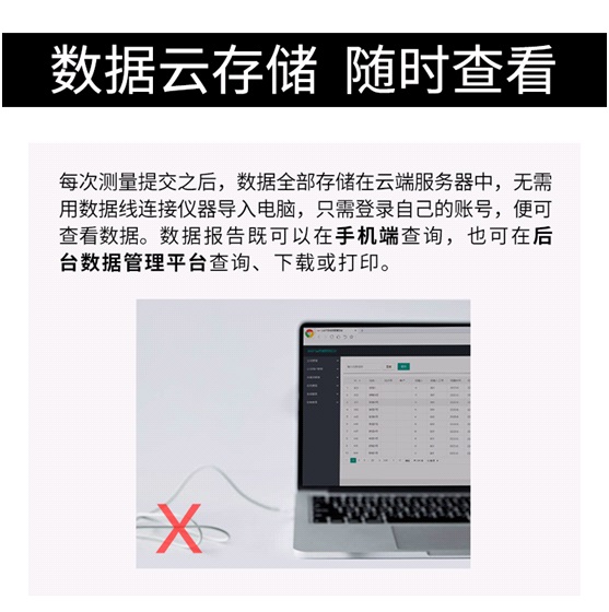 THL183plus可通過藍牙將存儲的數(shù)據(jù)下載到電腦,對數(shù)據(jù)進行編輯、存儲、打印報告等。同時也可連接到我公司開發(fā)的云服務(wù)平 臺,對數(shù)據(jù)進行存儲、查看、和分享,還可以將實時檢測數(shù)據(jù)分享他人,實現(xiàn)在線監(jiān)測的目的。